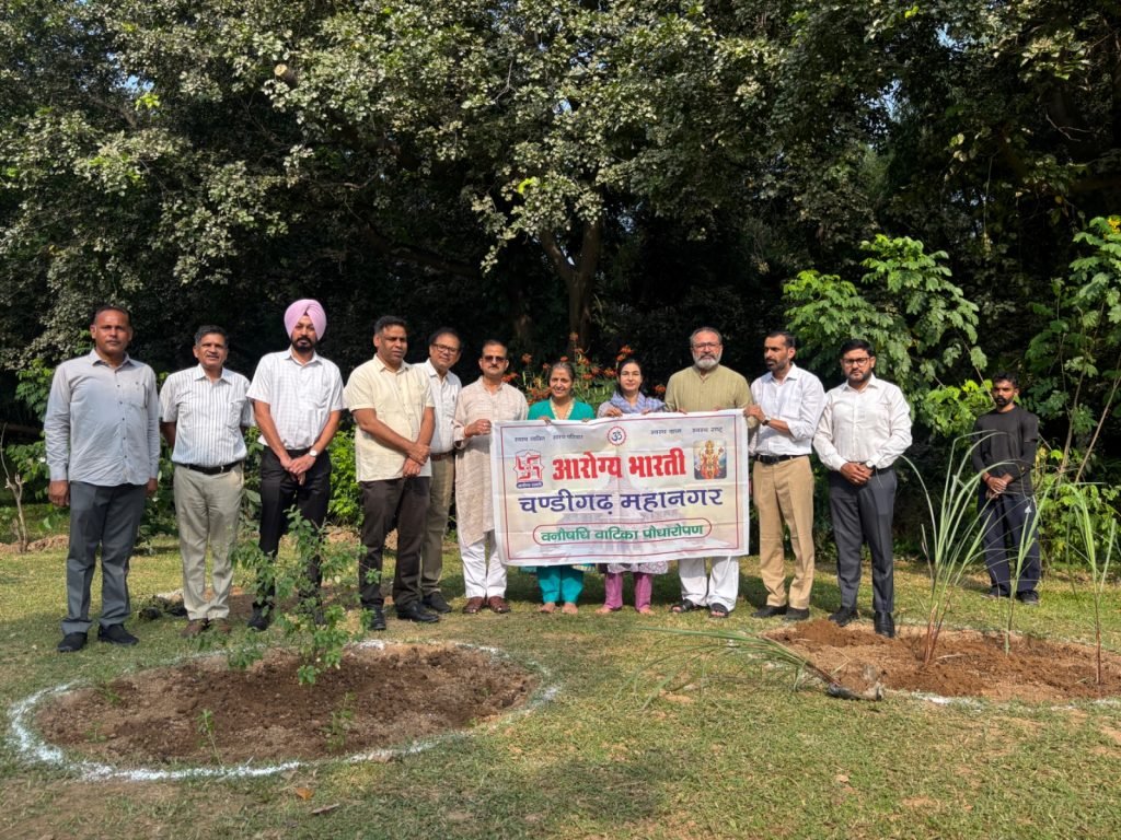 आरोग्य भारती चंडीगढ़ महानगर द्वारा वन औषधि वाटिका पौधारोपण का कार्यक्रम आयोजित किया किया गया, कार्यक्रम का उद्देश्य आमजन समाज में वन औषधि पौधों ,वृक्षों का प्रचार प्रसार व इनके अध्यात्मिक धार्मिक व वैज्ञानिक गुणों को हर घर तक पहुंचा जाया। आज लोग इन्हें खर पतवार समझकर काट रहे है, प्राचीन समय से औषधीय विज्ञान भारतीय संस्कृति की धरोहर रही है इसलिए आरोग्य भारती पूरे भारत वर्ष में इस धरोहर को संजोय रखने के लिए प्रयासरत है। कार्यक्रम में आरोग्य भारती के राजस्थान एवं उत्तर क्षेत्र संयोजक, राष्ट्रीय कार्यकारणी सदस्य व आरोग्य मित्र योजना के राष्ट्रीय संयोजक संजीवन कुमार जी विशेष रूप से उपस्थित रहे । चंडीगढ़ म्युनिस्पल कॉरपोरेशन के कमिश्नर अमित कुमार जी मुख्यातिथि के रूप में उपस्थित रहे आरोग्य भारती चंडीगढ़ महानगर के अध्यक्ष डॉक्टर संतोष कुमार व सचिव प्रोफेसर शिवानी शर्मा व उपाध्यक्ष अधिवक्ता करमजीत चौधरी , पूर्व वाइस चांसलर प्रोफेसर सुशील कुमार तोमर, प्रोफेसर अनुपम बाहरी संयोजिका पंजाब विश्वविद्यालय, सुरिंदर पाल चौहान जी हरियाणा प्रांत प्रचार प्रसार प्रमुख कार्यालय प्रमुख जगत राम , अमित दीवान संयोजक पीजीआईएमईआर चण्डीगढ़ कार्यक्रम में उपस्थित रहे।